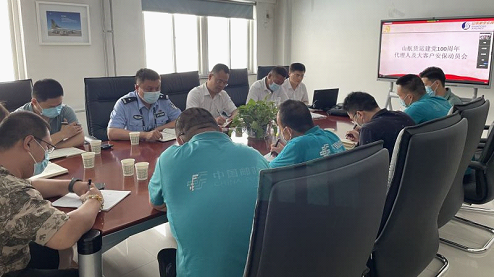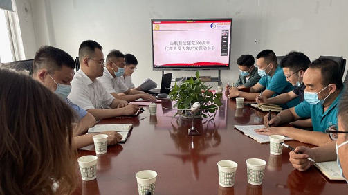 为确保中国共产党建党100周年活动的顺利进行,按照货运部2021年“安全生产月”活动的相关部署工作,2021年6月24日,货运部济南销售单元邀请济南机场公安场区负责人郭昊以及各货运代理人参加山航货运建党100周年代理人及大客户安保动员会,此次会议通过线下+线上的形式展开。